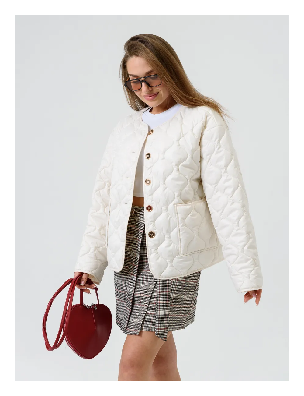 Куртка стеганая утепленная демисезонная от бренда COMFI - это идеальный выбор для тех, кто ценит комфорт и стиль в повседневной жизни. ВАЖНО! КУРТКА СИЛУЭТА ОВЕРСАЙЗ. БОЛЬШЕМЕРИТ. Эта базовая куртка - жакет выполнена из водоотталкивающего и стеганого материала, который обеспечивает тепло и защиту от прохладного воздуха при температурах от 0 °C до +15 °C. Высокотехнологичный утеплитель Atmo Duo, слоган которого звучит как "Тепло без объёма" согреет в сезон весна - осень, а гладкая фактура материала делает куртку легко чистимой. Курточка осенняя великолепно сочетается с платьем и прямыми брюками, как вариант в офис и для школы, а также с джинсами и леггинсами. Свободная форма прекрасно смотрятся как на идеальных фигурах, так и на формах с особенностями. Базовую модель отличает прямой силуэт, длинный рукав, застежка на пуговицах и боковые накладные карманы. Верхняя курточная плащёвая ткань с водоотталкивающим и ветрозащитным покрытием отталкивает воду, грязь и надежно защищает от ветра и дождя. Высококачественная подкладочная ткань обеспечивает удобство надевания и долговечность изделия. Легкая тонкая куртка из стежки практически невесома, не сковывает движений. Модель выполнена в стиле оверсайз (oversize), благодаря чему жакет утепленный подойдет на каждую фиругу. Утепленная классическая куртка со стёжкой волна - идеальное решение для стильного и комфортного образа в прохладную погоду. Отсутствие капюшона делает куртку более универсальной в сочетании с различными нарядами. Полностью женский дизайн и рисунок волны на добавляют куртке особый шарм и стиль. Эта куртка станет отличным выбором для создания уютного и стильного образа в прохладное время года.