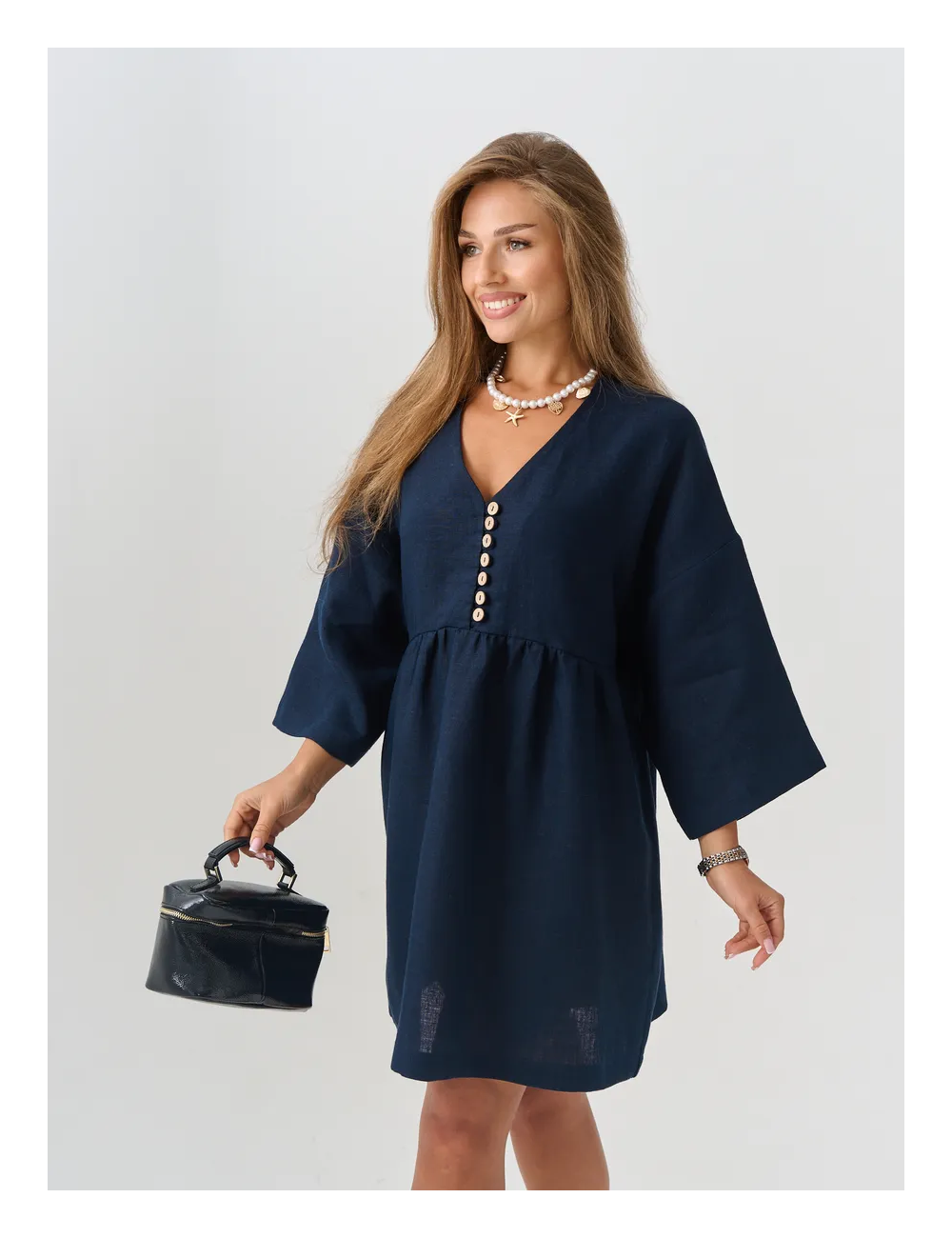 Стильное женское платье в модном классическом стиле станет идеальным выбором для жарких летних дней. Легкая ткань из натурального 100% льна дарит ощущение комфорта и позволяет коже дышать, потому что материал гипоаллергенный. Наше платье на пуговицах является отличным решением для повседневной носки. Эта модель отличается широкой размерной сеткой, что делает ее подходящей для женщин больших размеров плюс сайз. Платье скрывает недостатки и визуально корректирует фигуру. Благодаря свободному силуэту и удлиненному фасону модель добавляет утонченности. Платье с рукавом 3/4 позволят вам чувствовать свежесть и комфорт во время движений. Приятная льняная ткань мягко струится, создавая эффект невесомости. Наше длинное платье миди идеально подходит как для пляжа на море, так и для офиса и на каждый день. Универсальный дизайн гармонично впишется в гардероб каждой девушки или женщины. Это базовая вещь подходит на каждый день. Платье изо льна станет отличным выбором на лето. Это платье с длинным рукавом с классическим свободным силуэтом подчеркнет вашу элегантность и добавит строгости образу. Легкое и свободное, оно подойдет для девушек с любым типом фигуры, обеспечивая комфорт и уверенность. Однотонная расцветка и стиль минимализма делают это платье универсальным элементом гардероба, подходящим для различных возрастов и мероприятий — от деловых встреч до романтических свиданий.